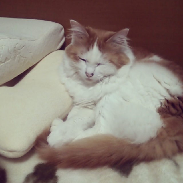 母の枕の横で寝てた。