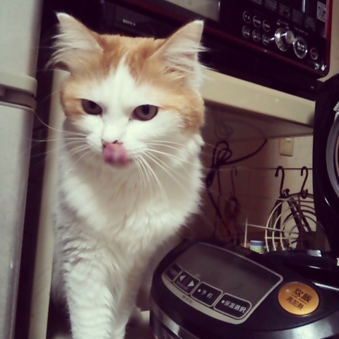 本日も炊飯器の後ろに避難してたので、